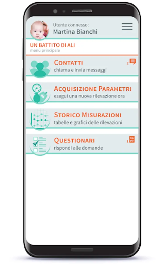 The Un Battito di Ali app is part of a monitoring platform that allows doctors in the Cardiology and Congenital and Pediatric Cardiac Surgery ward to remotely monitor small patients, both for health aspects and for other aspects related to the lifestyle of the themselves.