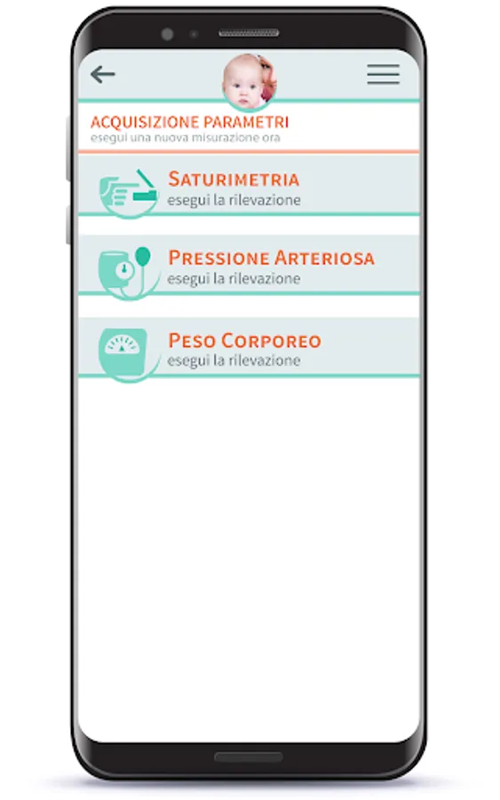 The app allows you to monitor patients at home or on the move, in relation to multiple vital parameters; typically, the app communicates with compact Bluetooth multi-parameter devices that can be easily transported in an ad hoc case or with individual devices which the user is expected to equip that allow the detection of blood pressure, heart rate, oximetry, body temperature, single-track ECG, blood sugar, weight , etc., depending on the monitoring needs.