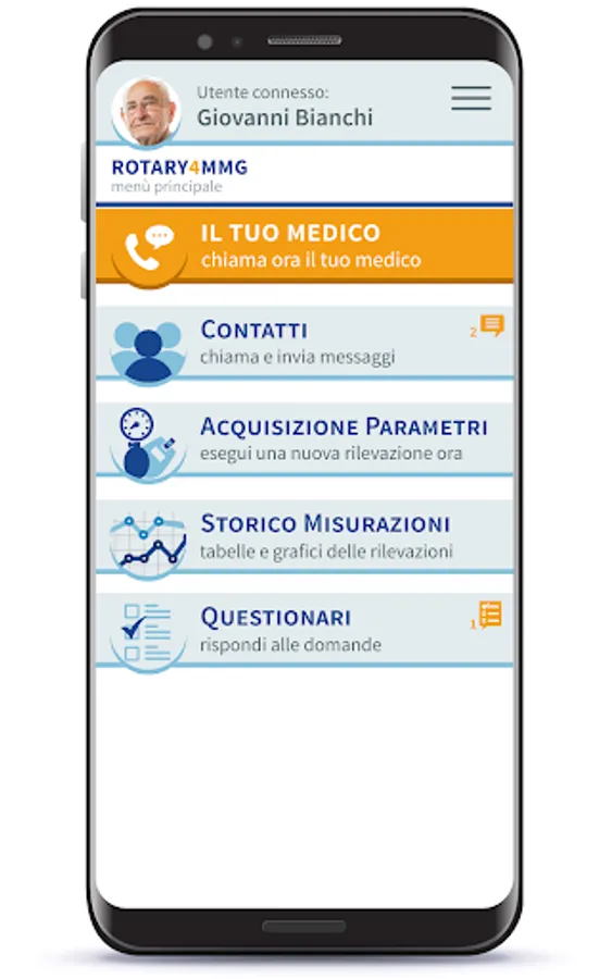 Rotary4MMG is the app developed thanks to the contribution of the Rotary Club of Jesi and aimed at patients in Vallesina so that they can be monitored remotely by their respective General Practitioners.