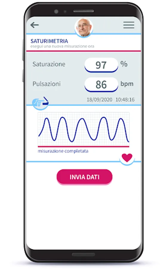 The application, installed on a smartphone or tablet, and the accompanying medical devices, work with a few simple finger touches: the simple and intuitive interface is particularly suitable for users who are not familiar with technological tools.