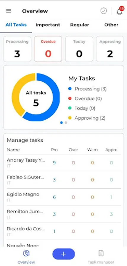- Warning overdue work, daily attendance.