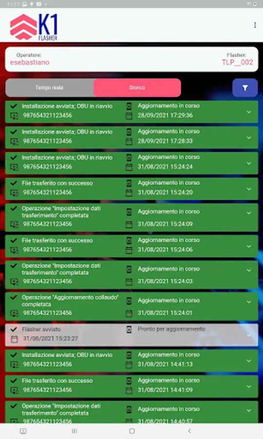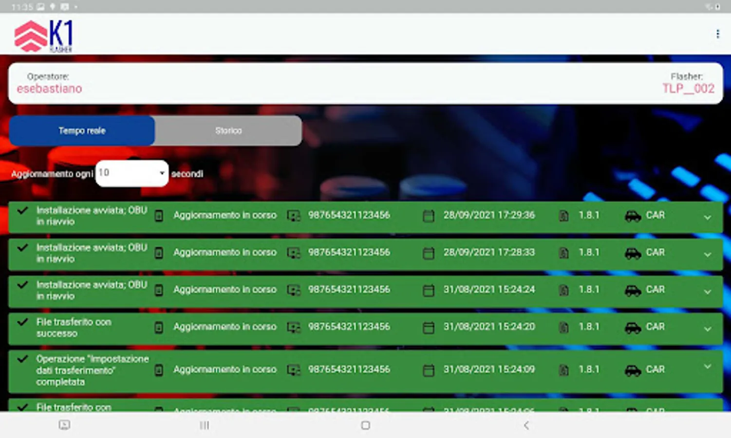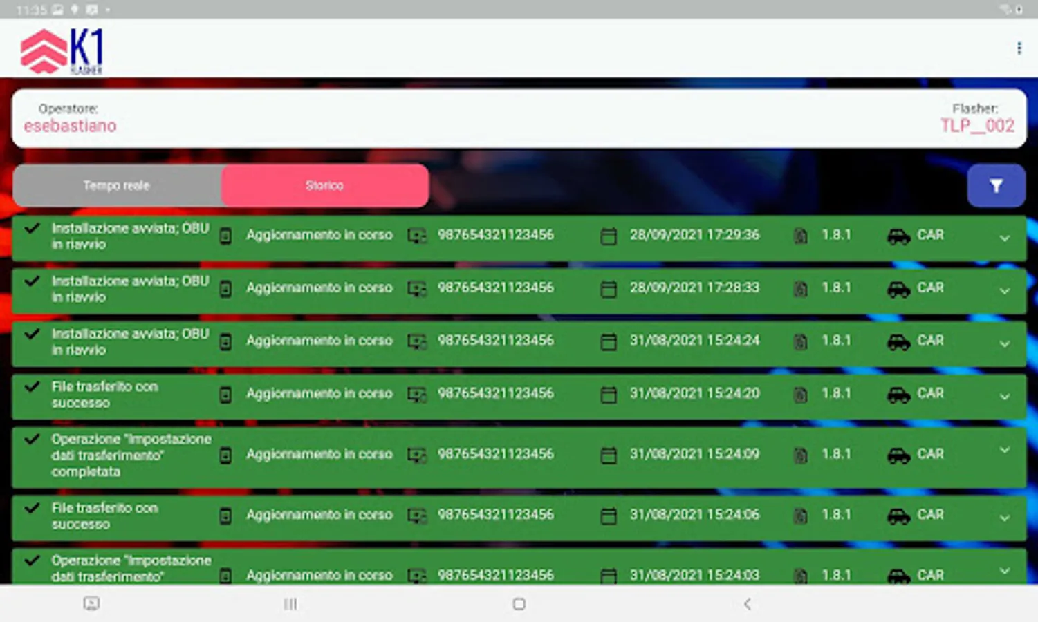 Through the application, it is possible to access real-time monitoring of the flashing activities independently of the K1FM32 module that generates them, as well as enabling a view on the historical data of the flashing activities.