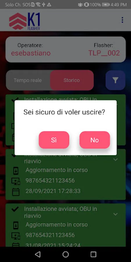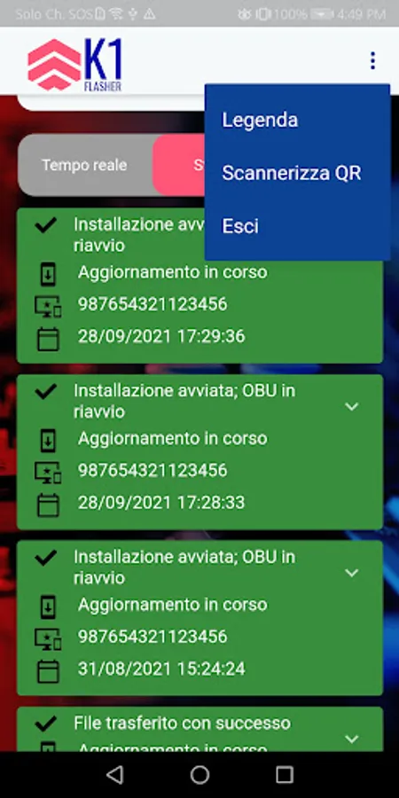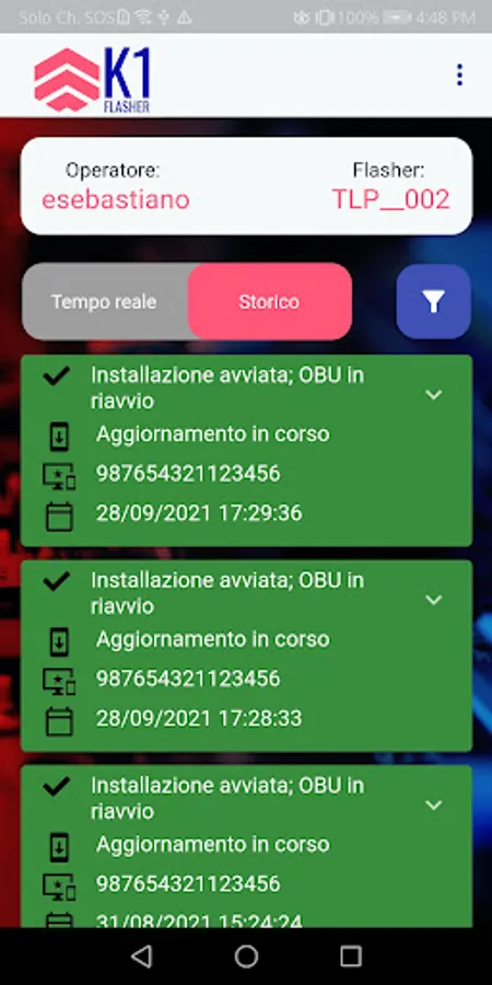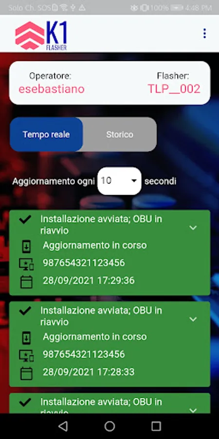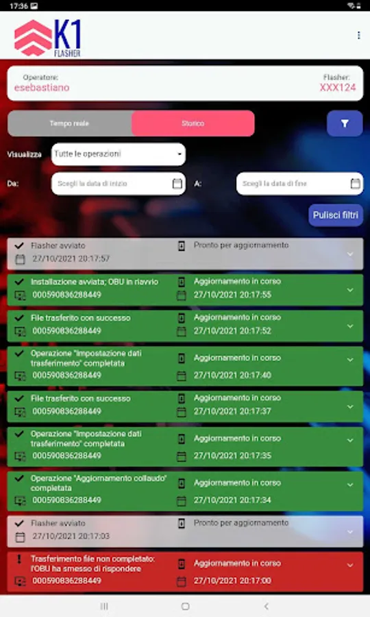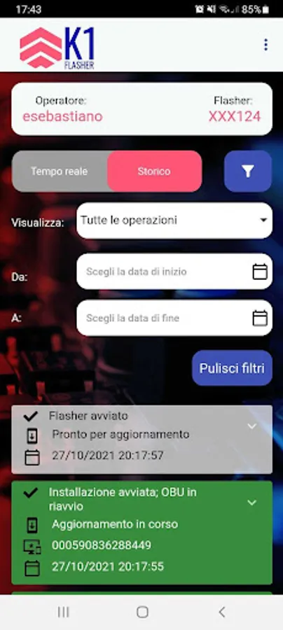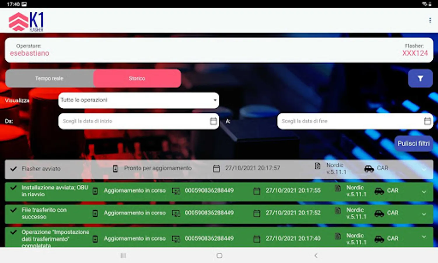 Through the application, it is possible to access real-time monitoring of the flashing activities independently of the K1FM32 module that generates them, as well as enabling a view on the historical data of the flashing activities.