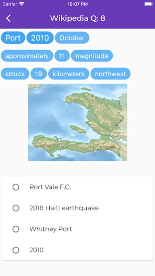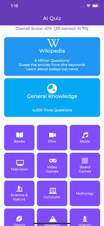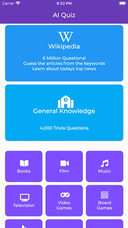 - Difficulty levels; easy (current news), medium, hard(devilishly hard, obscure knowledge) or any.