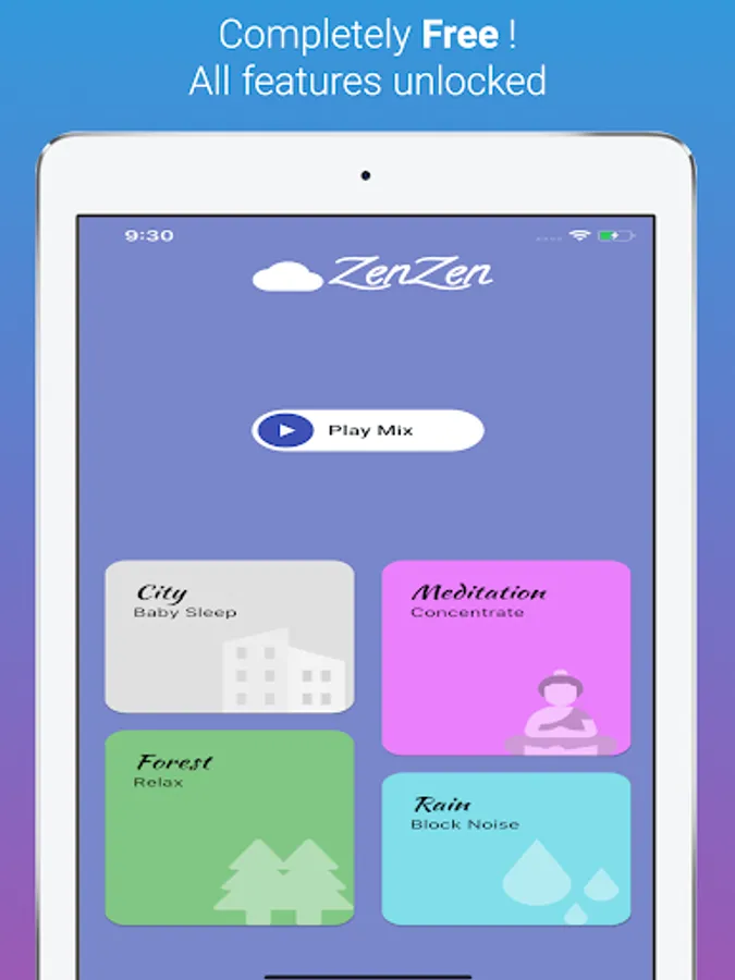 Minimalistic, beautiful app for sleep, concentration and relaxation sounds.