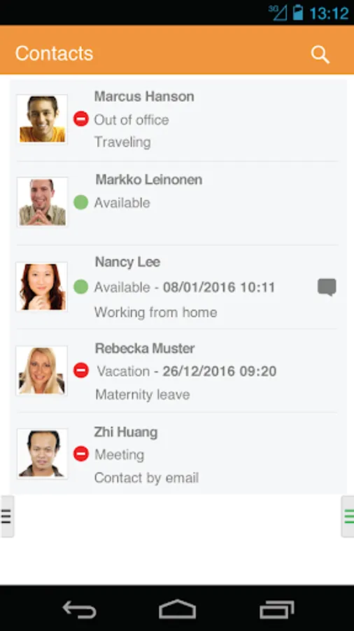 • Change your availability information quick and easy e.g. in a meeting, at lunch, on a business trip