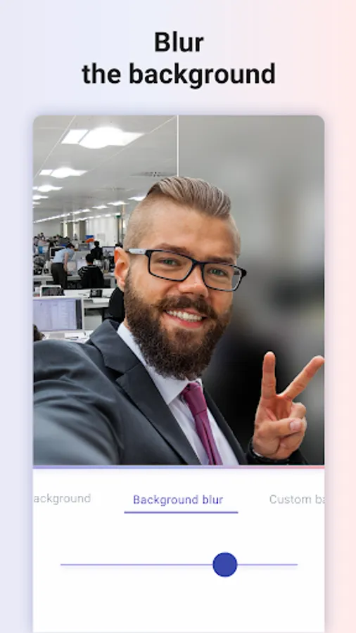 Take a photo with your camera, or pick from gallery. Apply skin & hair filters, add blur, or change background