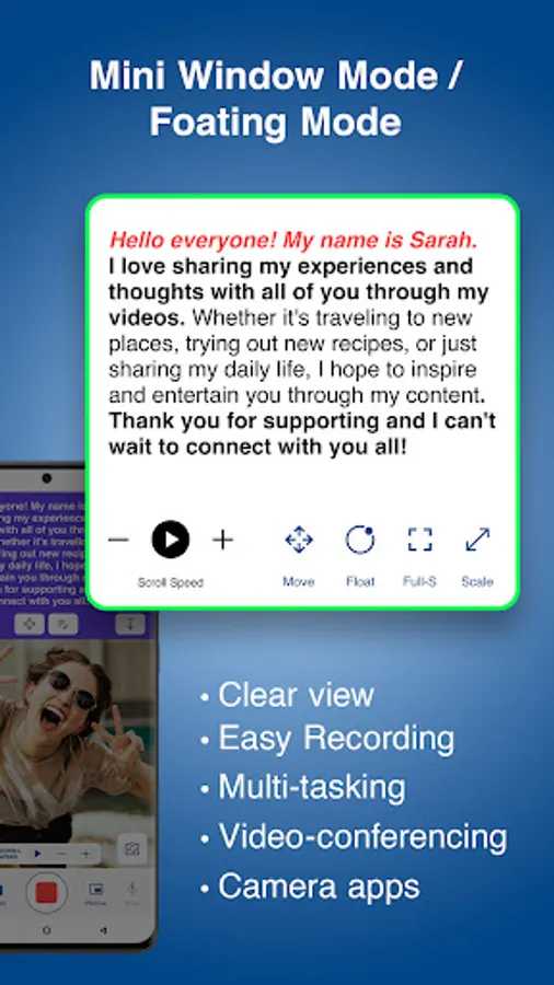 Do you think you need to improve your video? Then it's an easy-to-use teleprompter to read text on the screen. Also, a powerful teleprompter allows you to show floating text scripts anywhere.