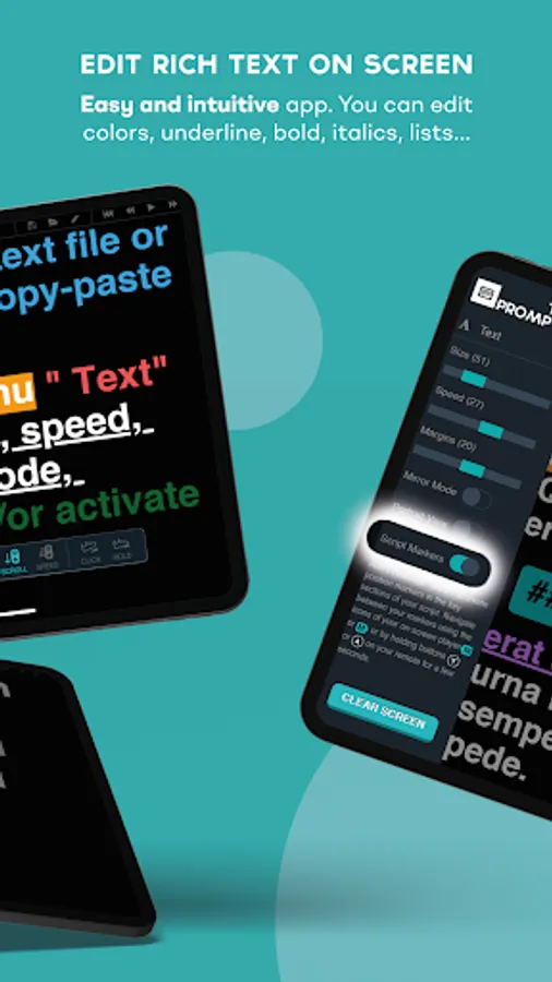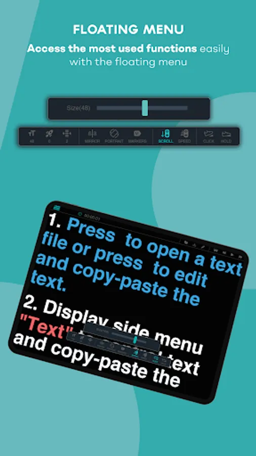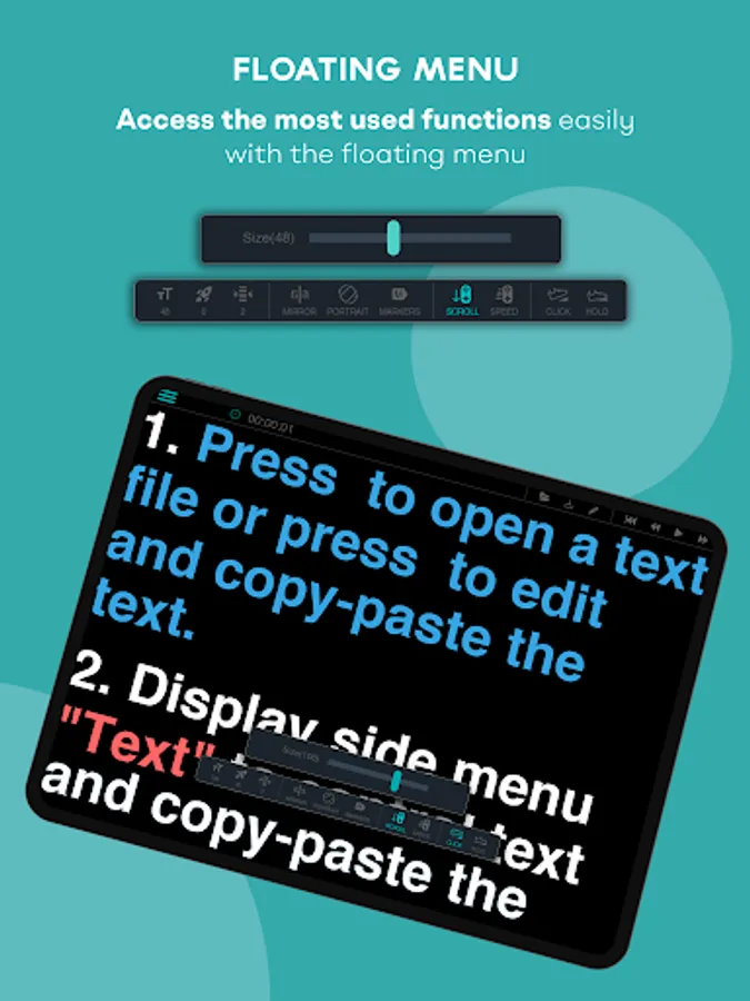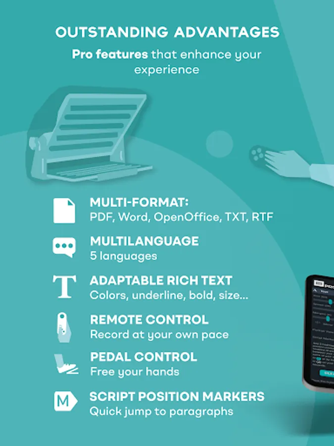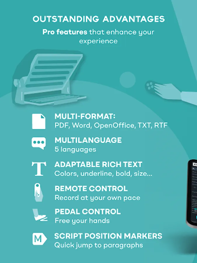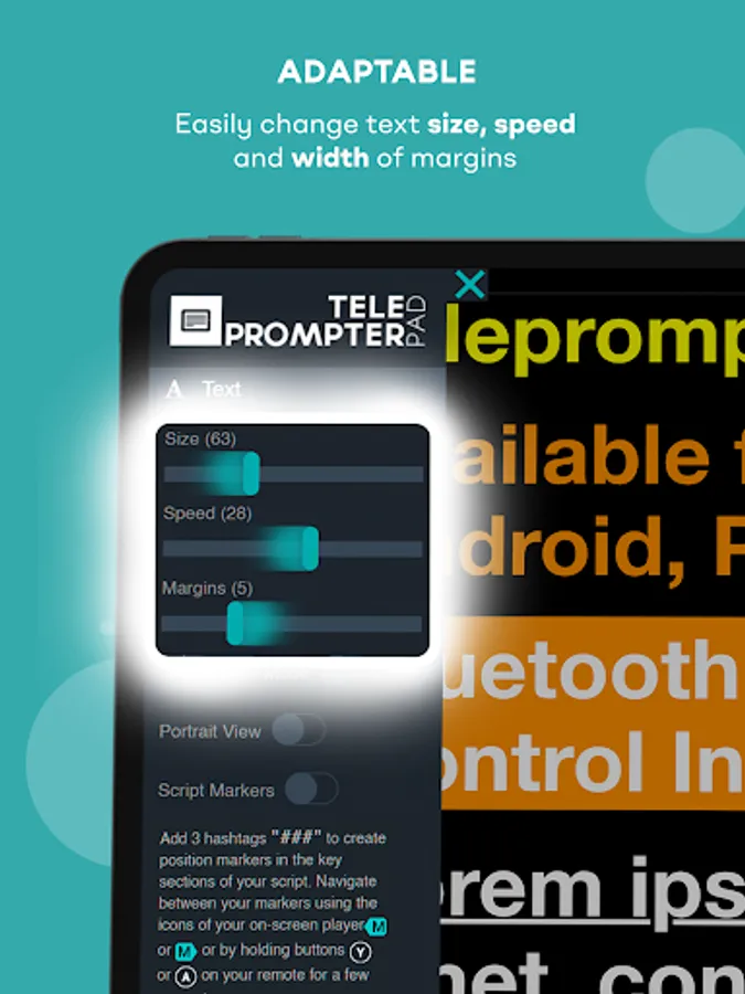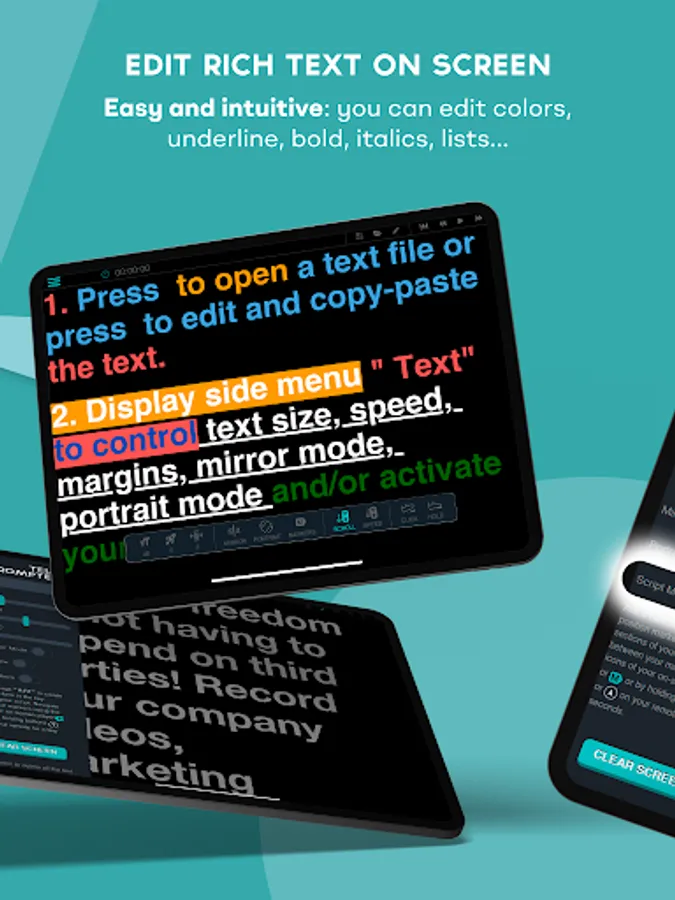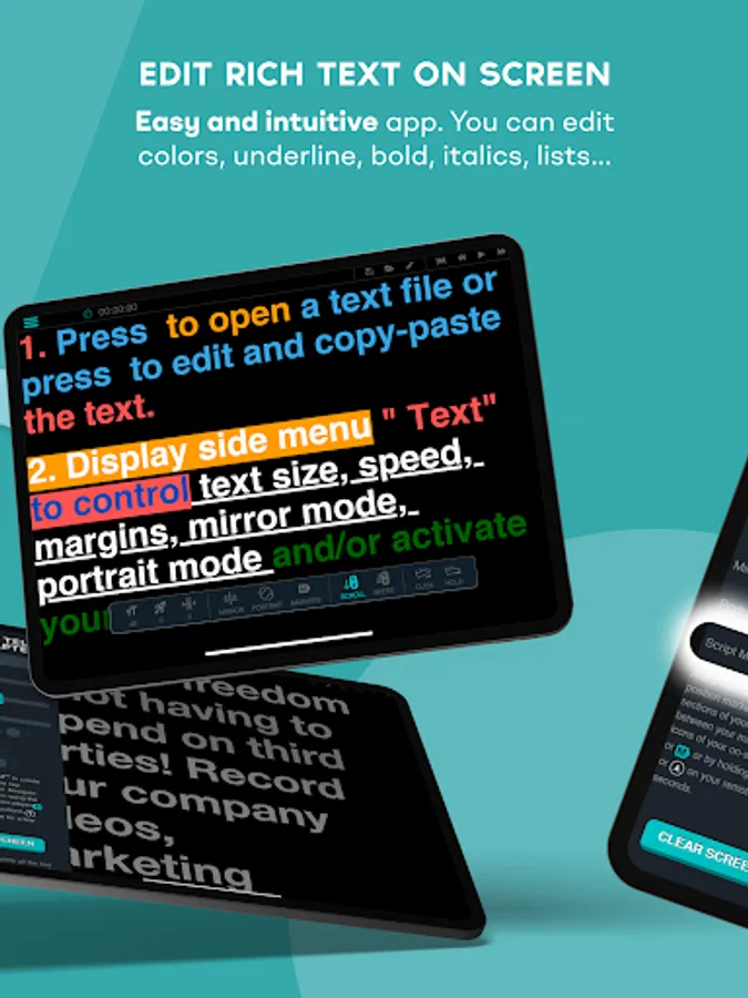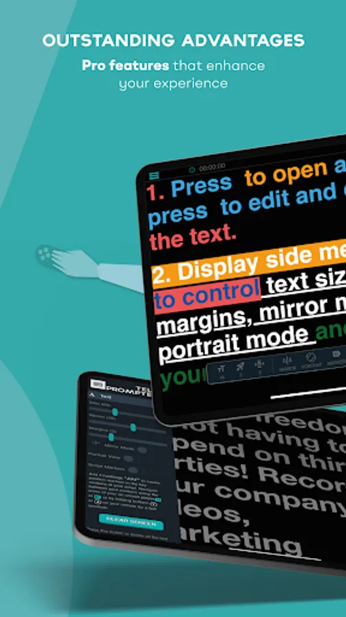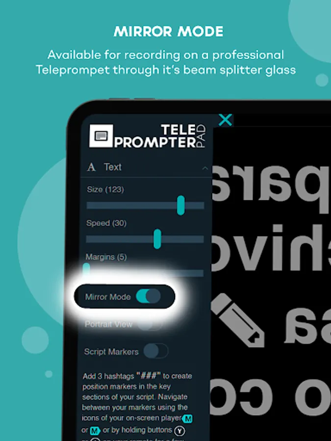 You can use this app for free without any limitation, turn your device into a teleprompter or use your device in combination with a professional mirror teleprompter.
