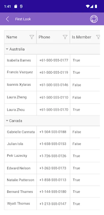 The .NET MAUI DataGrid is a powerful control with which you can easily display data in tabular format in your .NET MAUI applications. The control can be populated from various data sources and includes out-of-the-box support for operations such as editing, sorting, filtering, grouping, and more. Some of the powerful DataGrid features include UI virtualization and smooth performance when loading large data sets, single and multiple selection, a built-in styling mechanism for customizing the look of the control and its items, and more.