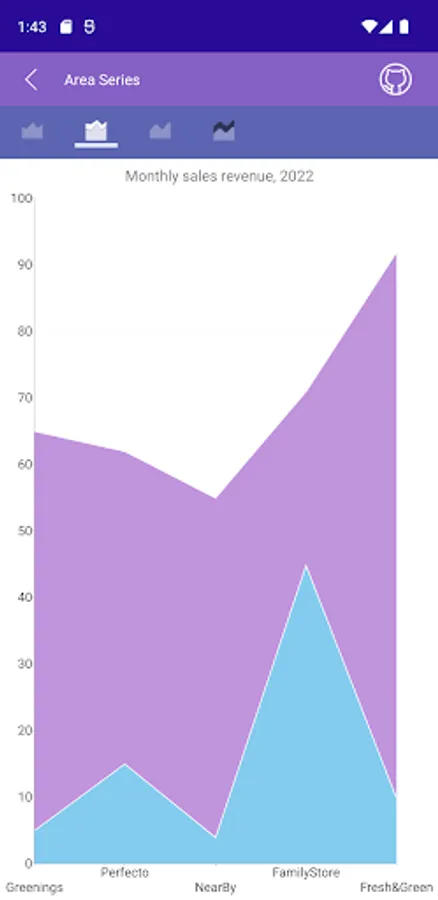 Feature-rich, intuitive, and easy to use data-visualization controls, the .NET MAUI Charts library capitalizes all the innate benefits of native UI. It exposes its objects and properties in C#, allowing for no-compromise customization and flexibility. Available charts include: Area Chart, Bar Chart, Line Chart, Pie Chart, Financial Charts, ScatterArea, ScatterPoint, ScatterSpline and ScatterSplineArea Charts, as well as Spline and SplineArea Charts.