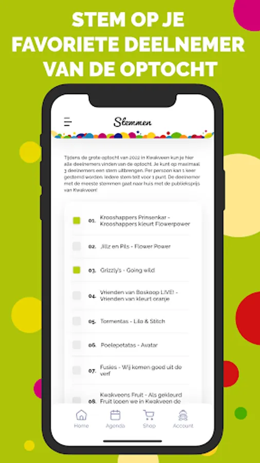 The Krooshappers app is the app of Carnival Association De Krooshappers. Via your personal account you can buy tickets for the party evenings and carnival events of the association.