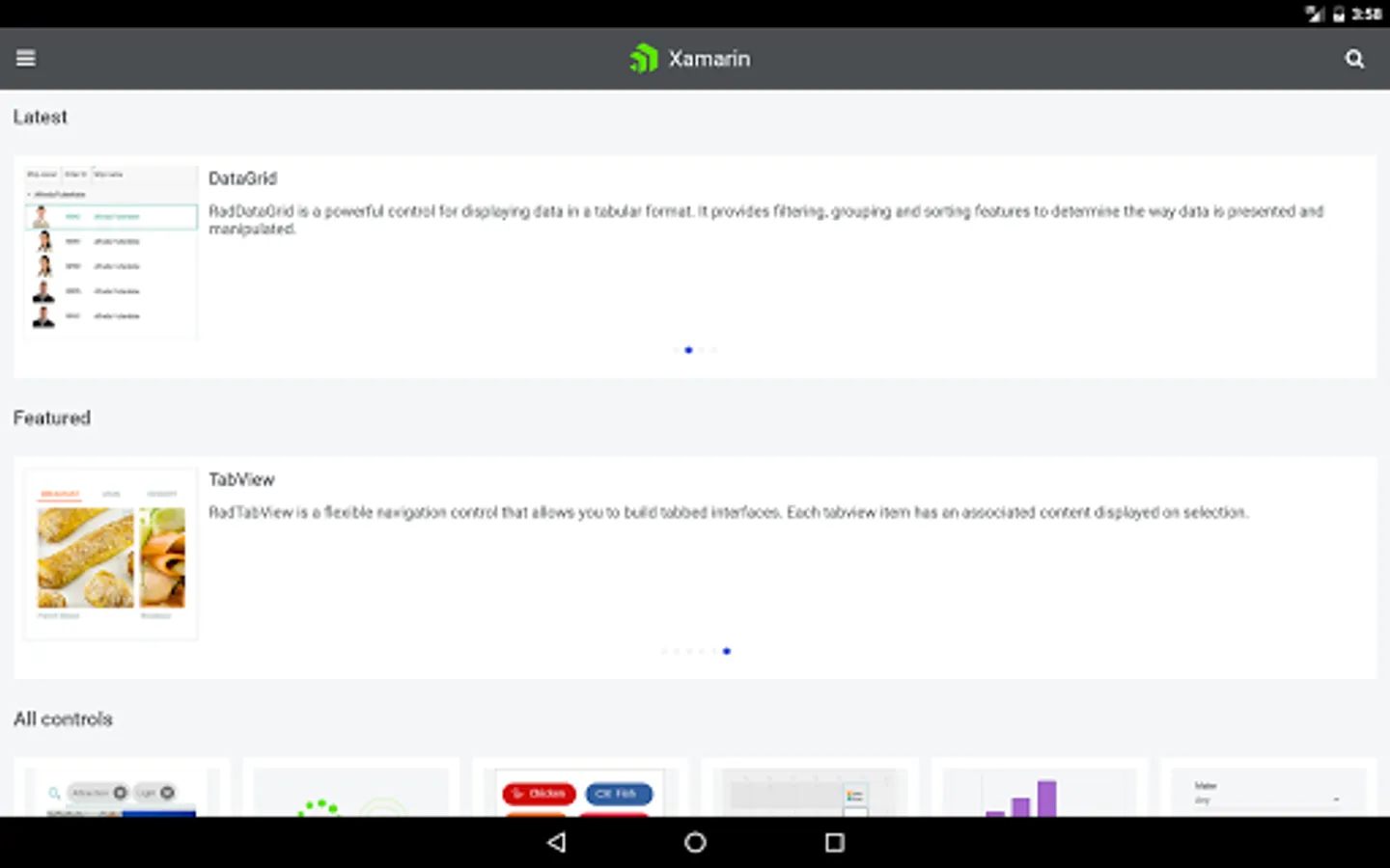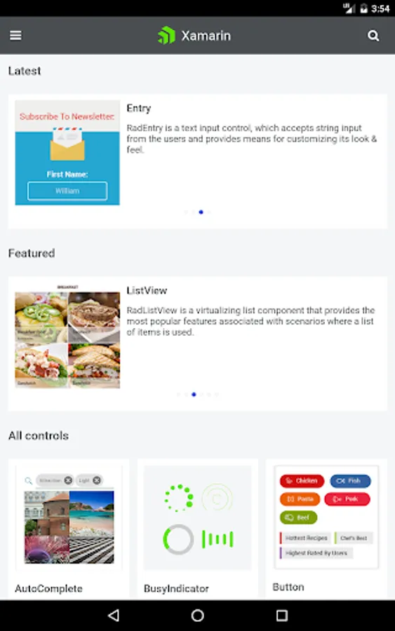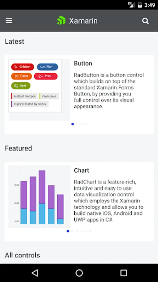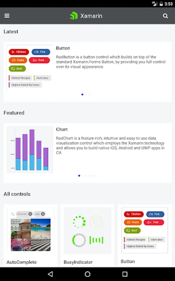 This application shows scenarios developers can achieve using Telerik UI for Xamarin. Browse the examples to get the first-hand experience with the suite. A Source code is available for every example.