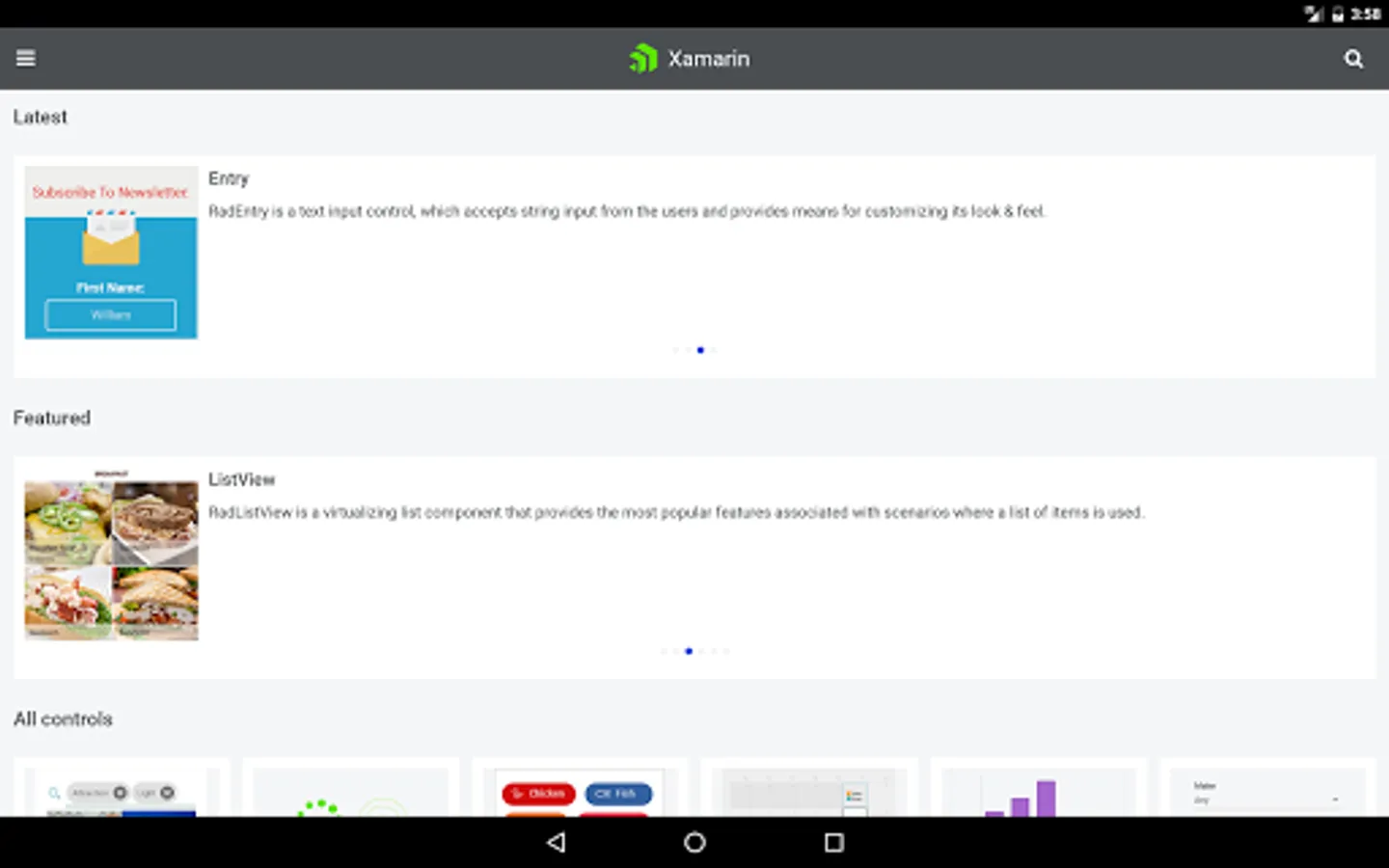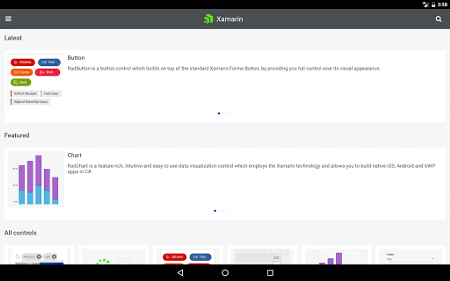 Telerik UI for Xamarin key components: