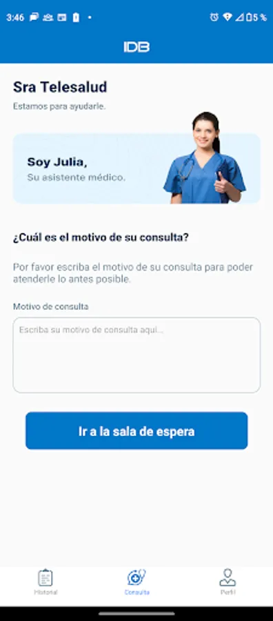 Telemedicine Application of the IDB Clinics Group, This application allows the doctors of the IDB Clinics Group to consult patients without having to go to the clinic facilities.