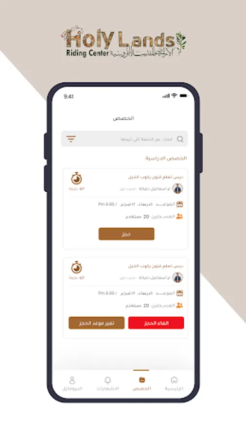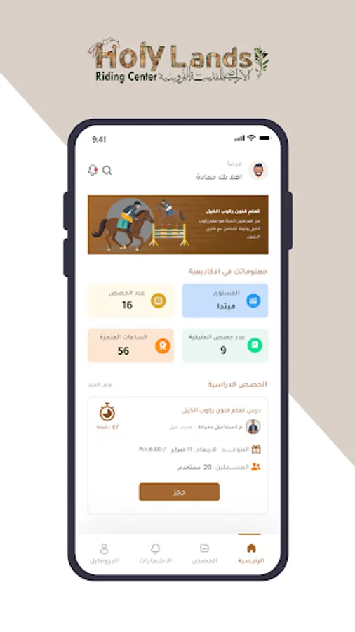An application dedicated to students of the Holy Land Equestrian Academy to follow up on their classes and training dates