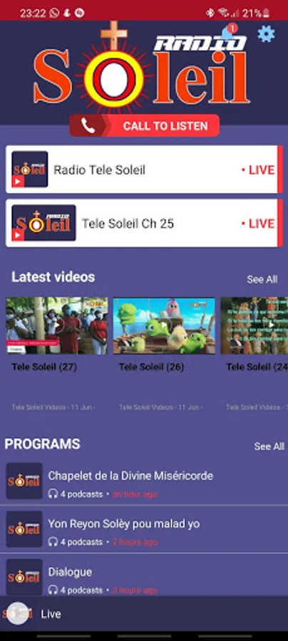 Radio Tele Soleil represente la voix de l'eglise catholique dans Archidiocèse de Port-au-Prince. Vous pouvez ecoutez: