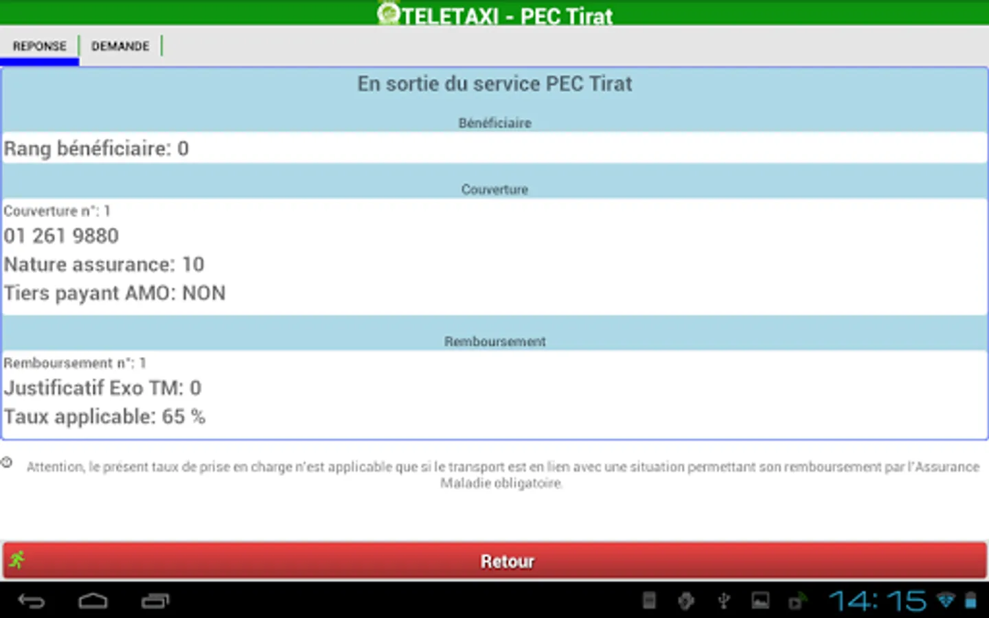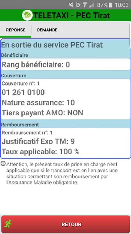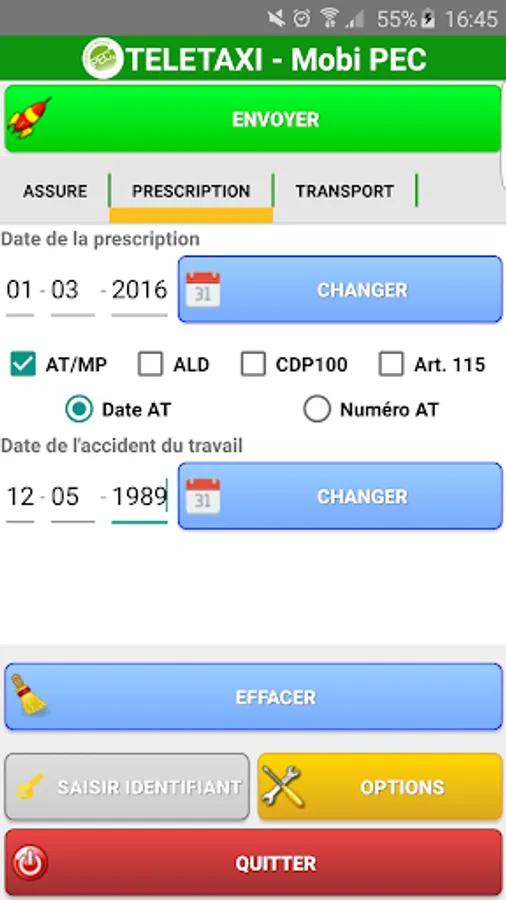 MOBIPEC to query the online services of the National Health Insurance to obtain information on the rights of your patients receiving a prescription of transport. And so calculate the support rate for the mandatory part, and other information that could helpful beings.