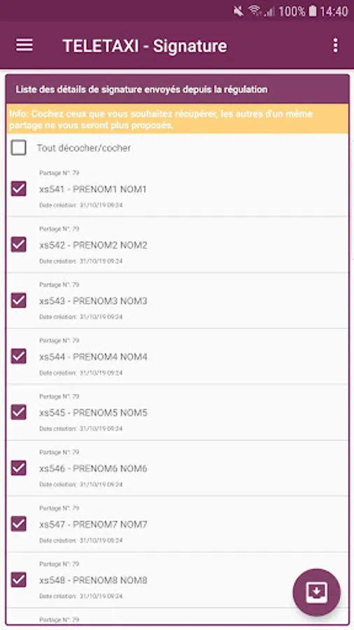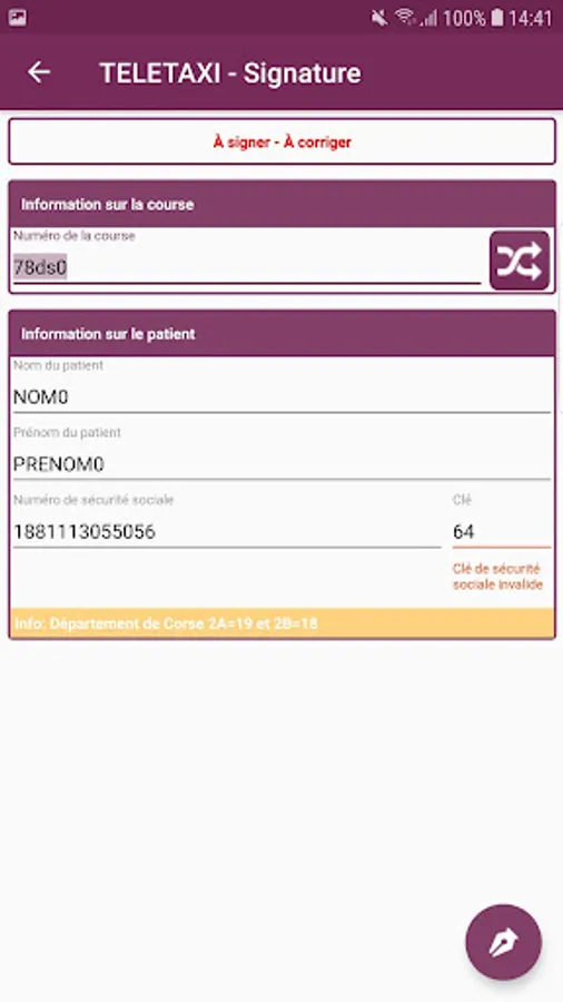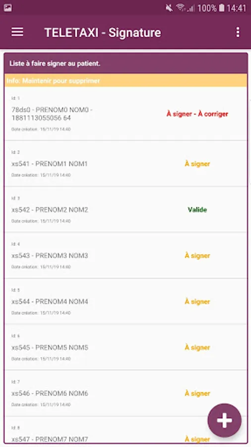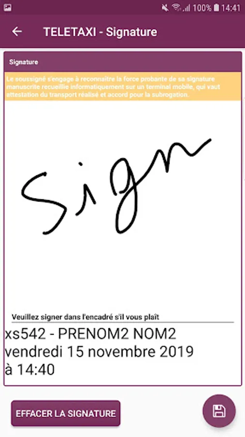 Recovery of handwritten signatures on the smartphone according to each patient. Thus, to link a signature with a race number, an entry date is thus stored with the signature. You can retrieve a signature request from the internet and then send the signature for the same request over the internet.