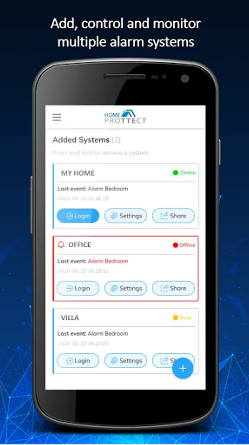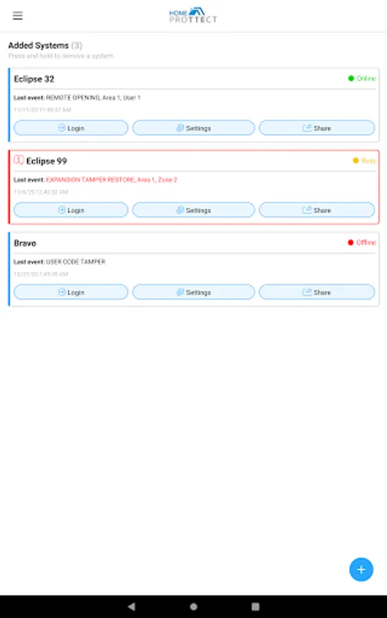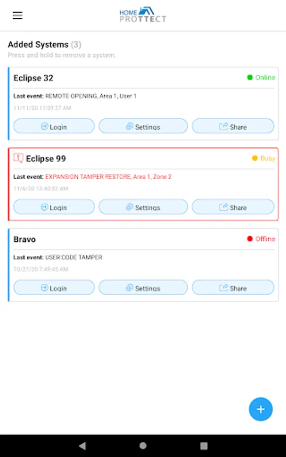• System sharing – a user can share his system by generating a QR code through the Home ProTTEct app, so another user can add this system as well.