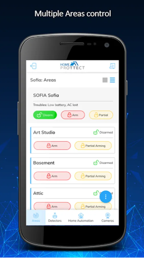 • Detector management – the user can manage(enable/disable) the detectors/zones of the system when needed