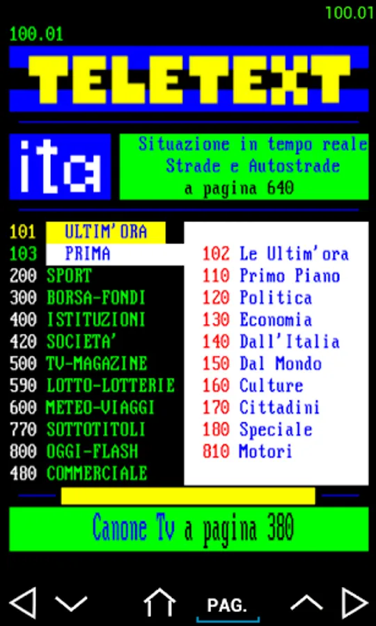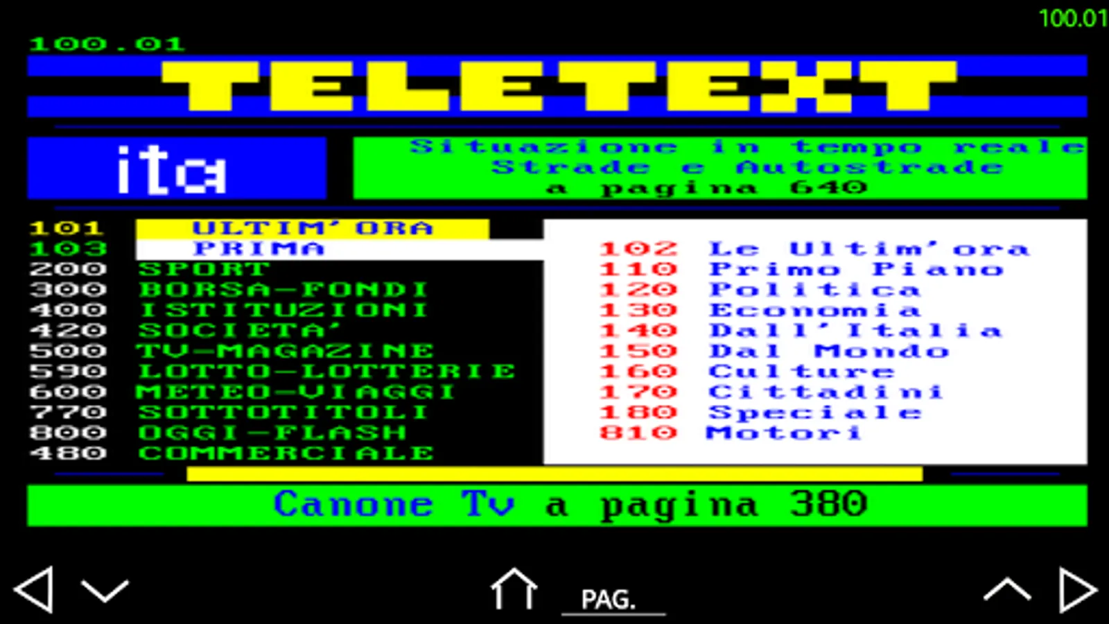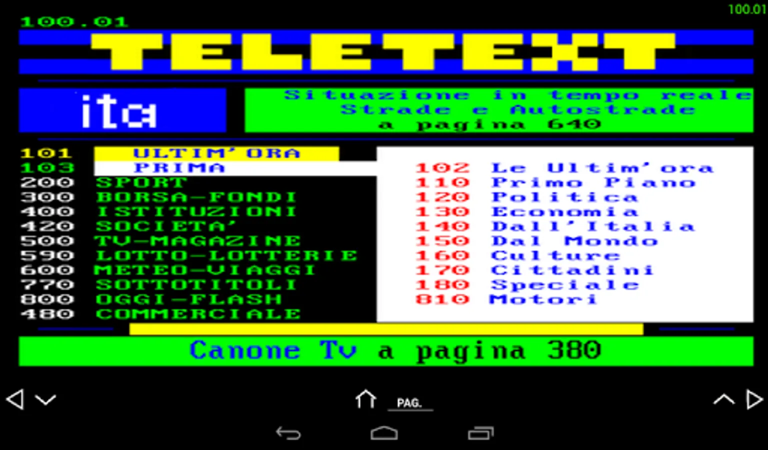 The app Teletext Ita, leads directly to your smartphone or tablet teletext that you see on TV on the national network.