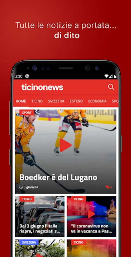 The new app allows you to browse Ticinonews with simplicity and immediacy of the best news stories, sports, current events, magazines and much more.