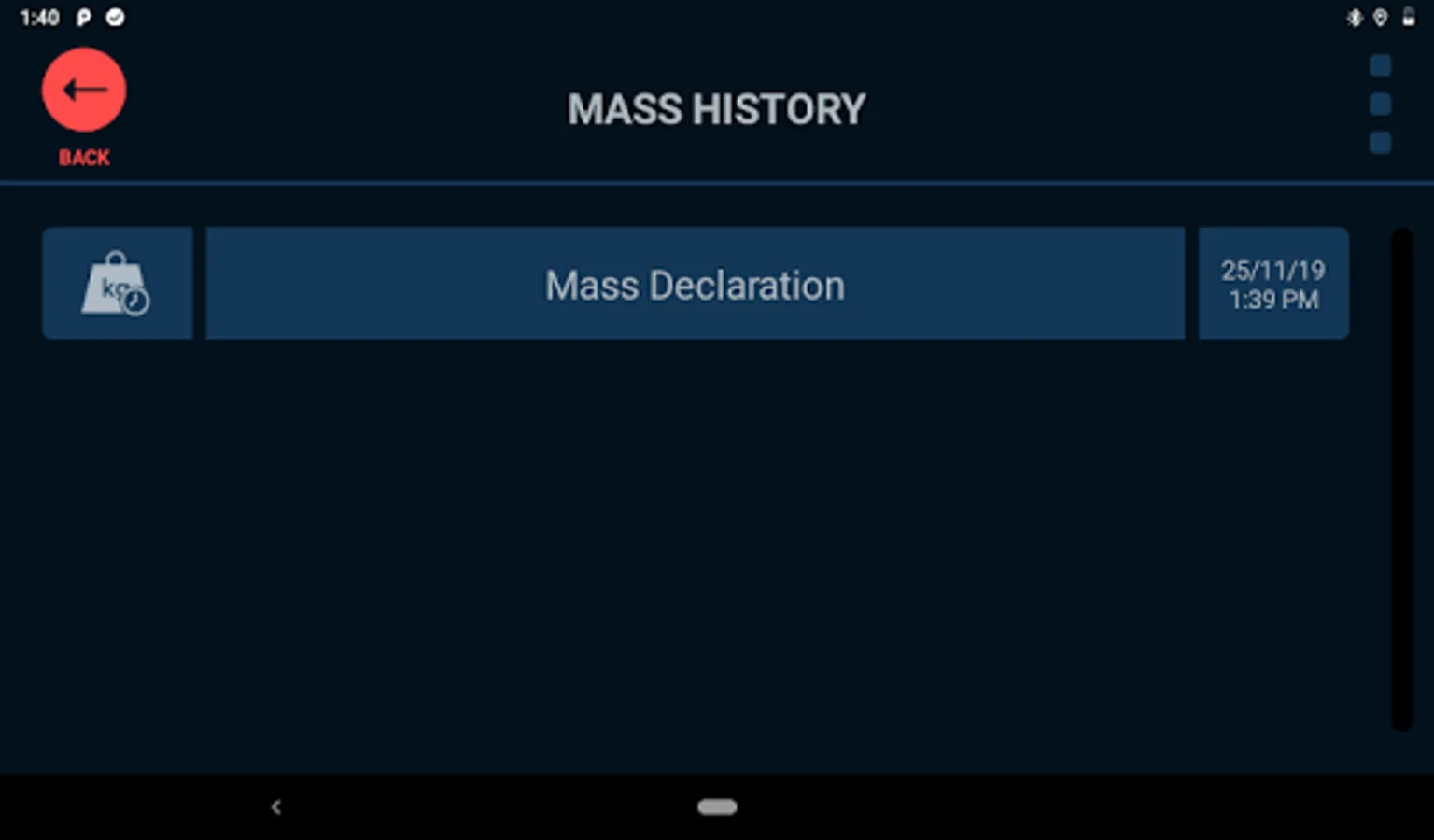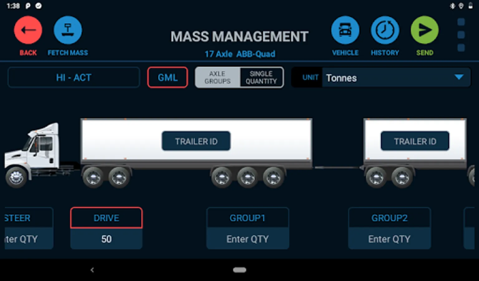 App to manage on-board mass for heavy vehicles, ability to fetch mass from scales via Bluetooth.
