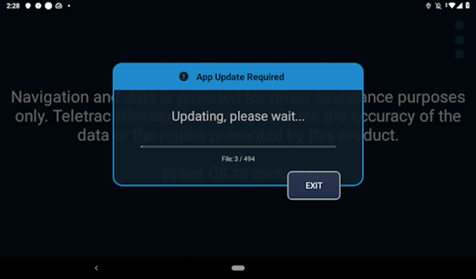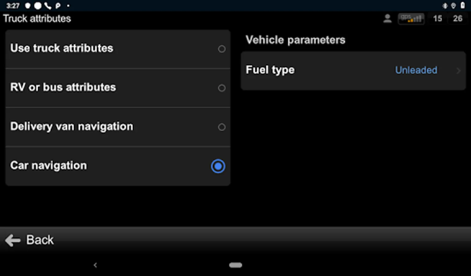Navigation app with support of road closures based on the selected vehicle. Ability to update maps and resources over-the-air automatically when connected to a WiFi.
