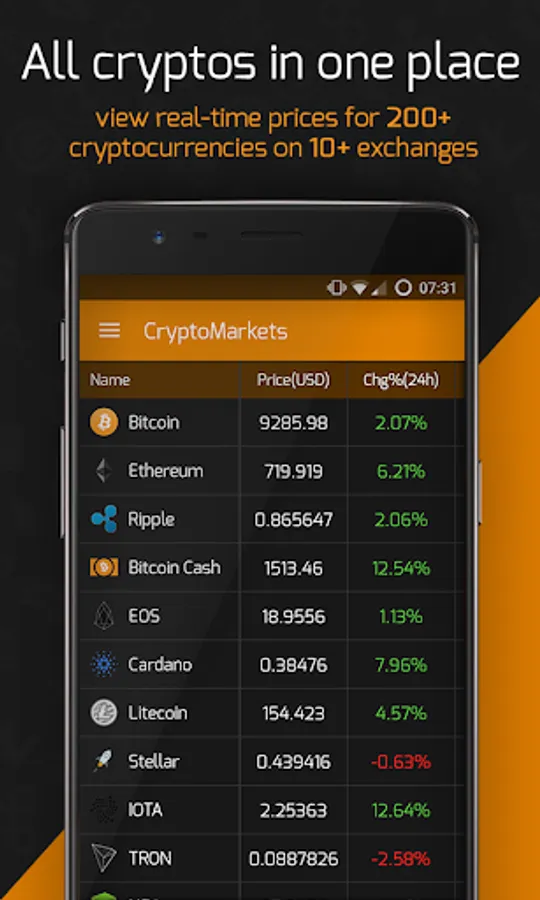 ✓ view real-time prices for 200+ cryptocurrencies on 20+ exchanges