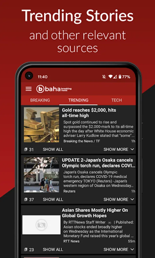 - The Trending news feed feature which generates articles from a number of relevant third-party sources
