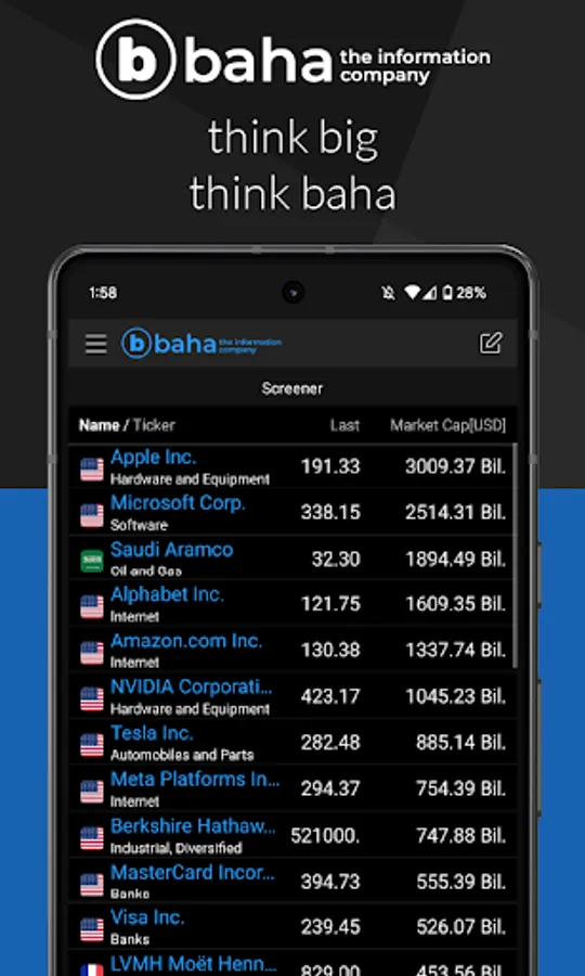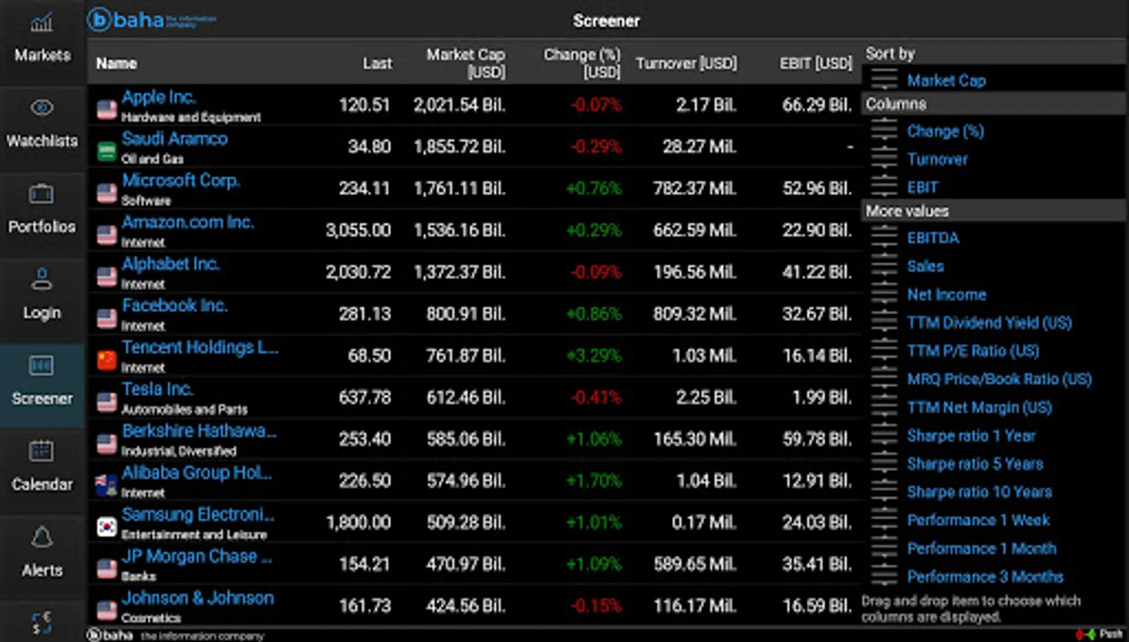 - Fundamental filters like market cap, EBIT, EBITDA, net income & turnover