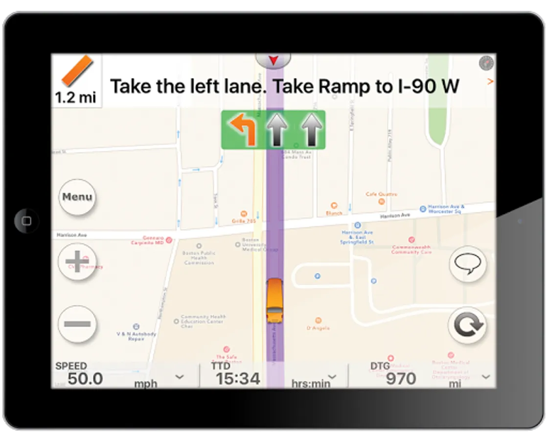 * Provides turn-by-turn voice instructions.