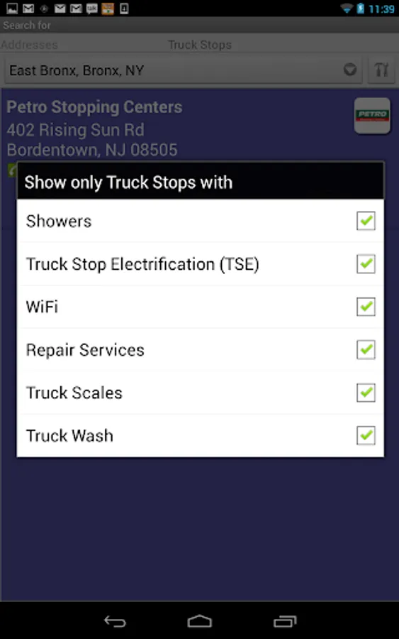 • Find Truck specific points of interest, truck stops, rest areas, repair facilities, weigh scales