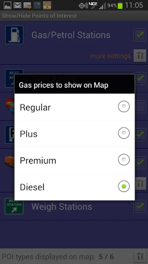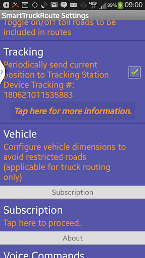 • Configure the app to reflect the size and weight of your vehicle to insure the best route. The default settings are set up for an 18 wheeler: 80,000 lbs, 53' length, 13'6" height, 8' 6" width. You can easily change these settings to be higher or lower to accommodate your vehicle size or Hazmat Level. Also supports motor coaches.