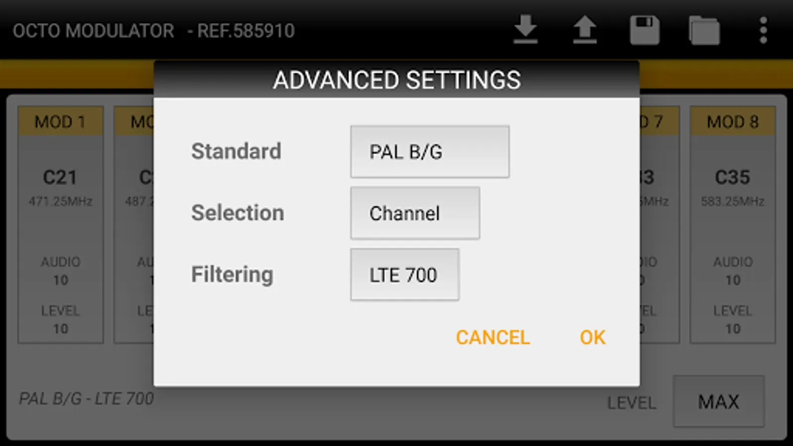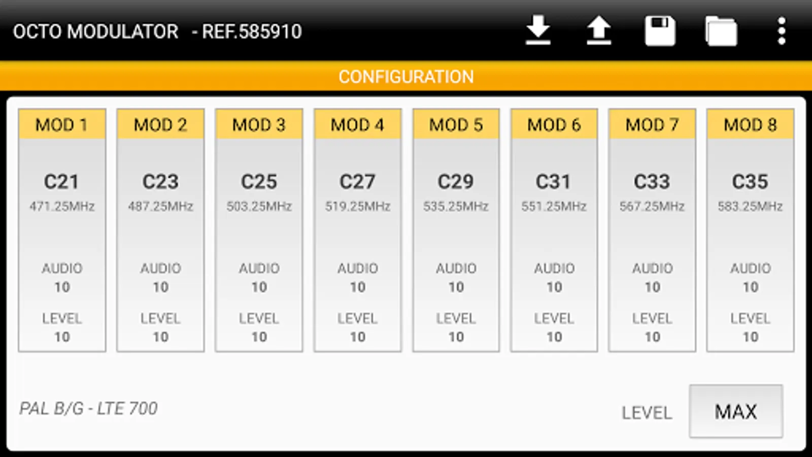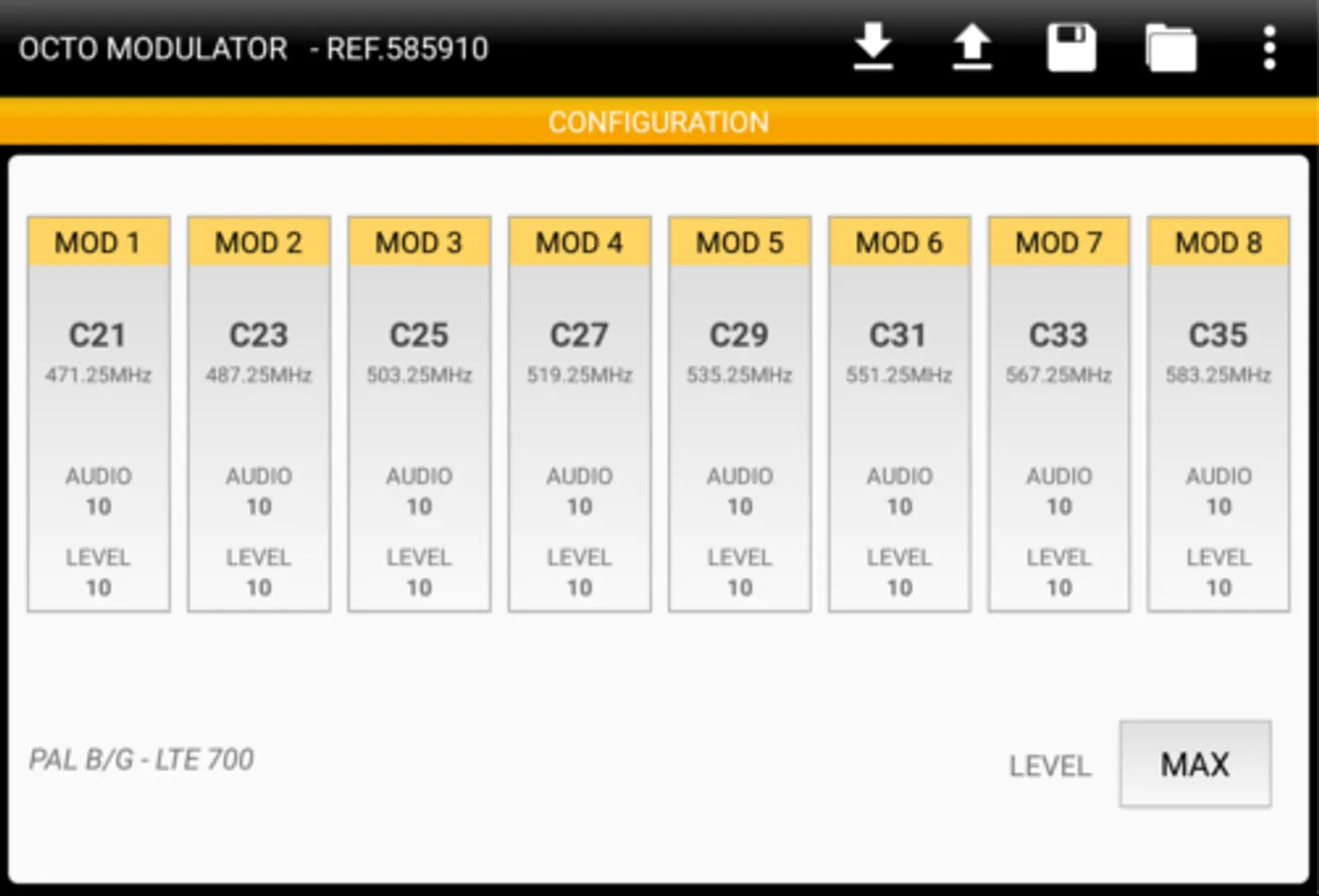 Program your A/V Octo Modulator in a simple way using a user-friendly interface. This app uses the tablet/smartphone USB OTG connection to communicate with the modulator.