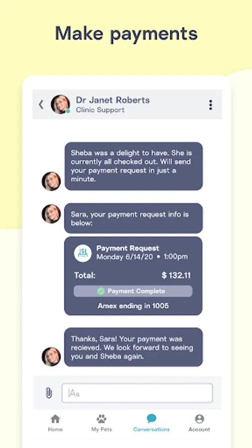 *Complete payments for appointments or pre-pay for upcoming services