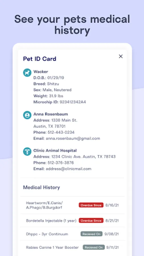 *Access and share pet vaccine information with other service providers, such as your groomer or boarder