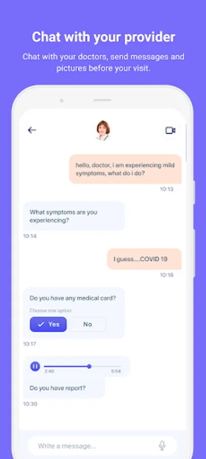 Make and manage medical appointments with a few taps for you and your loved ones. Never lose patience over long hold times on the phone trying to make a medical appointment. Join Televisit, search for a doctor who treats your condition and accepts your insurance, check their availability and make your appointment on the spot.