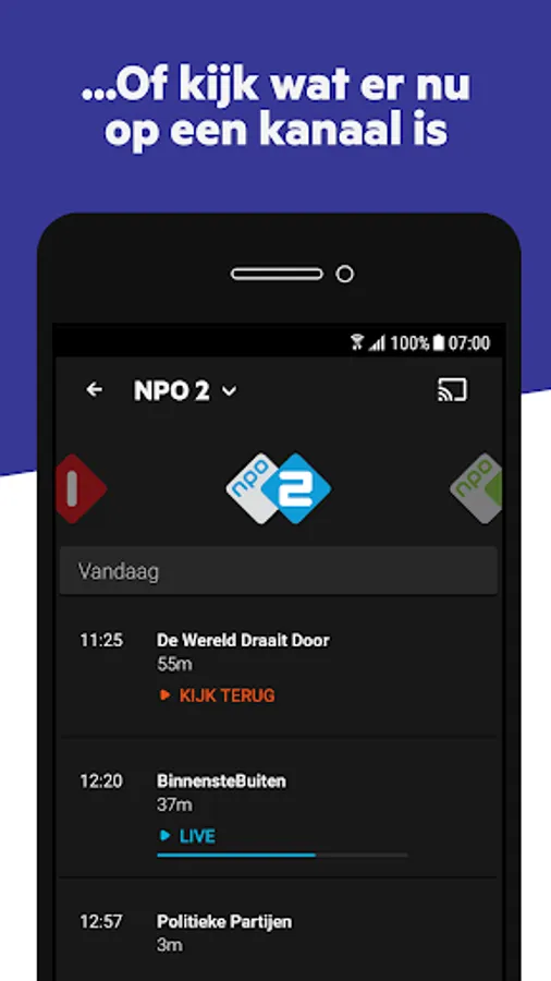 Using the Telfort iTV Online app, you can watch your favorite films and programs on your smartphone or tablet. The iTV app offers the following features: