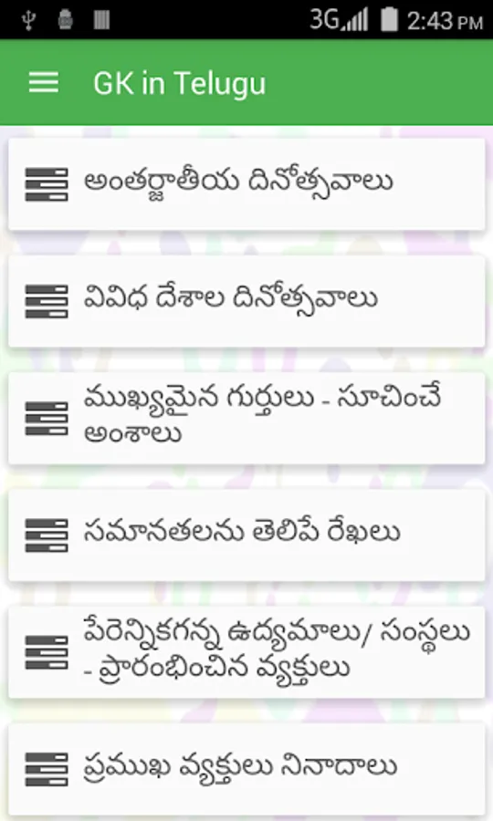 Offline General Knowledge (GK) in Telugu Language -- like History, Geography, Indian Polity, Indian Economy, General Science ,Indian Constitution,Industries,Awards & Rewards,Books and Authors,Arts and culture,Languages,Sports,Defense,Film Industry,Rivers and Lakes,Mountains and Forest,National Park,Education and Sociology etc.