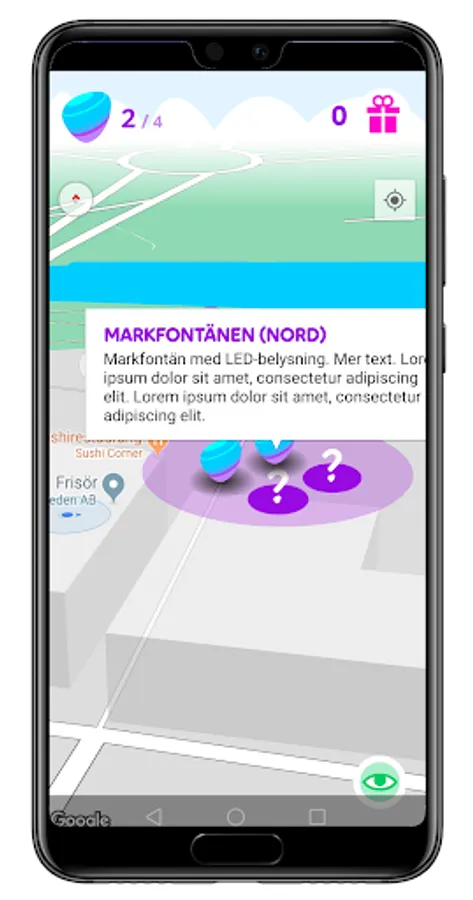 With the free Telia Tax Hunt app! can you participate in a treasure hunt and collect pebbles. Collect pebbles by going and downloading them in the app at different locations marked with round rings. With the service Telia Tax Hunt! we hope everyone will have fun together in the treasure hunt.