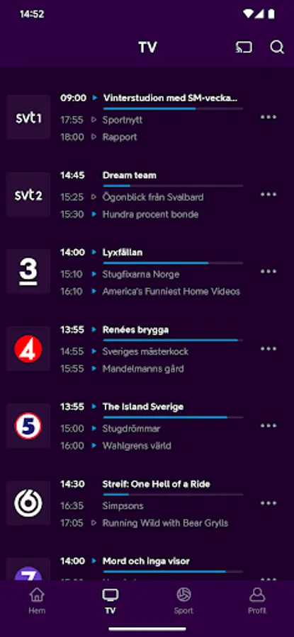 If you already have TV from Telia, most of your TV selection on all screens is included at no extra cost.