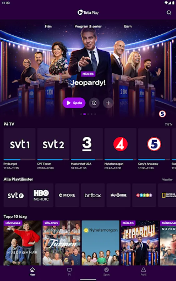 With Telia Play, you always have lots of fun with you, wherever you are. Enjoy the most popular mix of TV, movies and series for the whole family, whether you're at home, on the bus, in the summer cottage or abroad*.