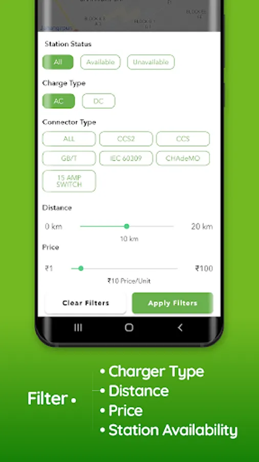 • Get Search filters with various parameters for the best EV charging station near me