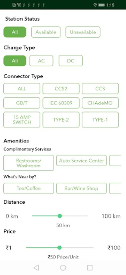 • Get Search filters with various parameters for the best EV charging station near me