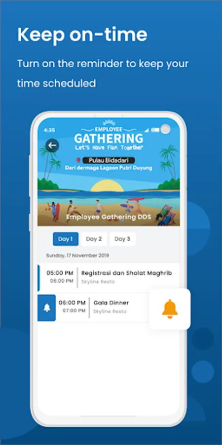 - Missing the agenda? No worries. You can set the reminder of the event and we will remind you.