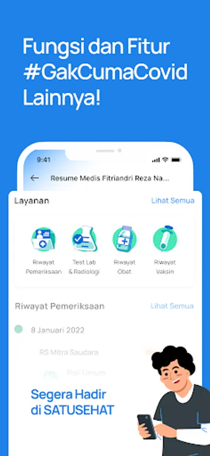 SATUSEHAT Mobile is a form of our commitment to provide the best health services and information for all Indonesian people. Various features are present in this application to make it easier for people to be healthier. Some of our flagship features are: