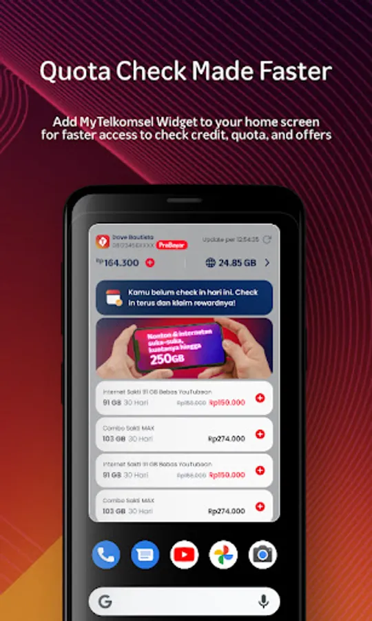 MyTelkomsel provides credit balance, various data packages, and complete digital services,