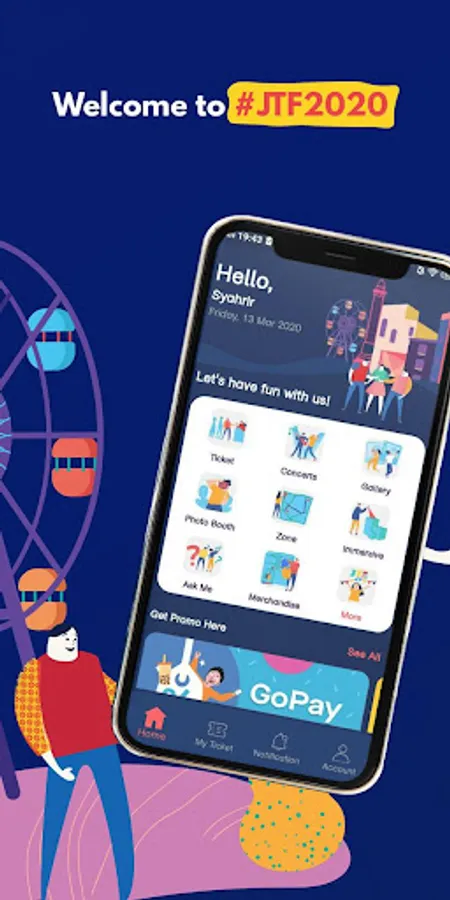 JTF apps is an official application for Jateng Fair event that developed by Telkomsigma. This Apps main feature is an electronic entrance ticket that is connected to online payment to make it easier for people to do ticket purchases without queue on location.